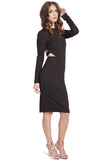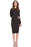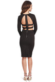The perfect day-to-night dress. Demure long sleeves and a chic midi-length hem balance this sleek LBD that reveals a completely open back. This feminine style is eye-catching with an open back that is framed with two straps and functional exposed zipper detailing.