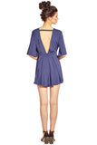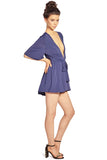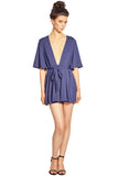 Dance all night in this soft silk-like jersey romper. Features a deep V and backline plunge with strap detailing at back of neck. Come with attached belt and double lined.