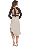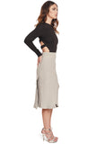 High-waisted, texture knit skirt with voluminous asymmetrical layering. Style with the Float Tee to complete the outfit.