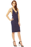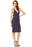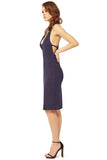 Make an entrance in this iridescent metallic knit, skinny straps accent the sides and the front cutout.