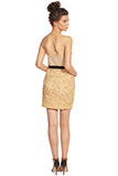 Look ultra-femme in this sweetheart dress with velvet detailing and rosette skirt. Comes with built-in corset.
