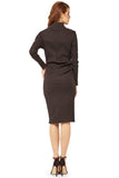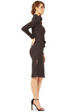 Crafted from stretchy ribbed-knit, this curve hugging dress is the perfect sweater dress. From the turtleneck, to ruched waist and side split zipper detail, this dress is a show stopper.