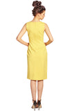 This midi ponte dress features a sharp square neck. Skirt is a tailored pencil fit with asymmetrical side front split.