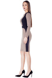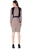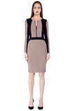 Colour blocking and and scuba style front zip lends a sophisticated edge to this long sleeve sheath dress. This ponte dress comes with hidden back zip and contrast side panels.