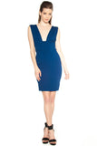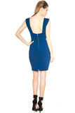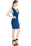 A simple yet sexy silhouette, created with a plunging neckline and open back. A broad band accentuates the waist with a slightly tapered skirt. Double lined with exposed gunmetal zipper.