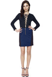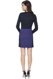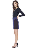 A colour block skirt with body contouring side panel, makes this skirt a closet staple. For an edgy look, pair with loose fitting tank tucked in to reveal an exposed zipper.